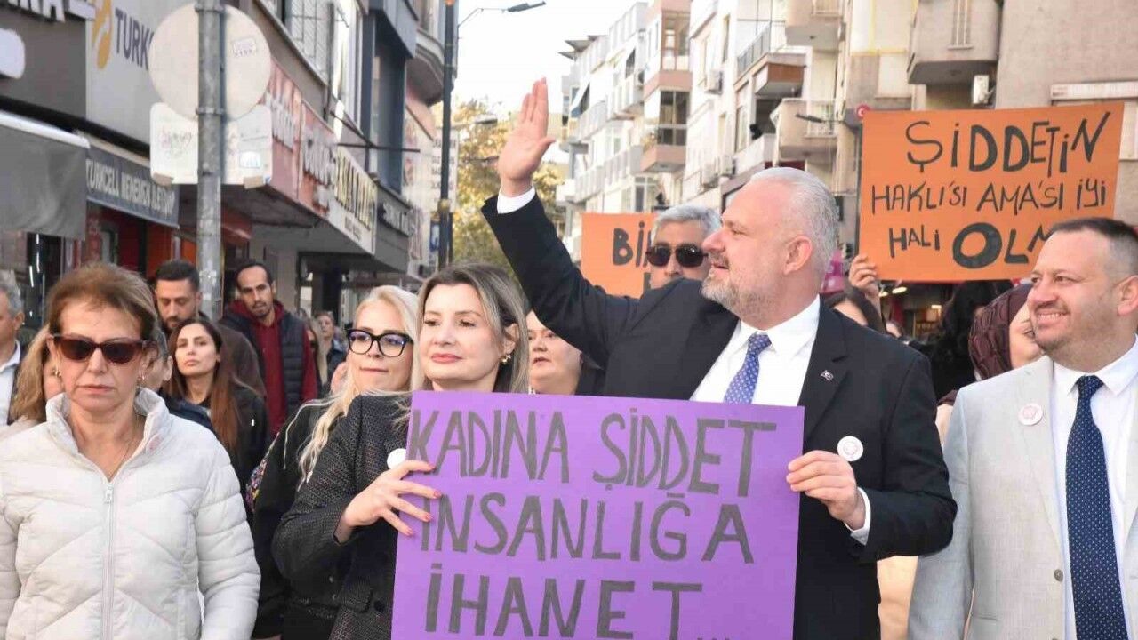Kadına Yönelik Şiddete Karşı Uluslararası Mücadele Günü, Menemen’de anlamlı etkinliklere sahne oldu. Yürüyüş ve salon programına eşi Filiz Pehlivan ile birlikte "Öldüren sevgi istemiyoruz" yazılı dövizi taşıyarak katılan Menemen Belediye Başkanı Aydın Pehlivan, "Kadın, bir ailenin kalbi; bir toplumun taşıyıcısı; bir medeniyetin temelidir. Kadına yönelik şiddet ise yalnızca bir kişiye değil, bütün bir topluma yapılmış en büyük haksızlıktır." dedi.