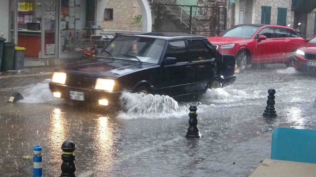 Muğla'nın merkez ilçesi Menteşe, dün akşam saatlerinden itibaren sağanak ve dolu yağışının etkisi altına girdi.