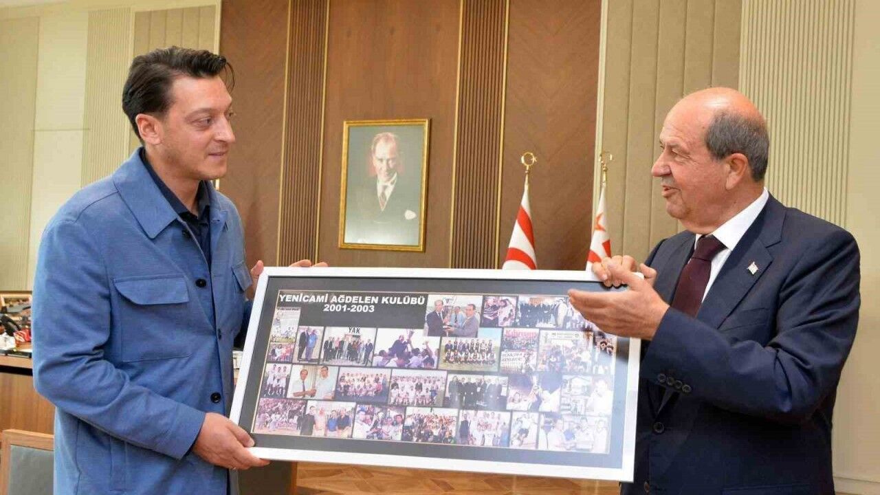 KKTC Cumhurbaşkanı Ersin Tatar, eski futbolcu Mesut Özil’i kabul etti.