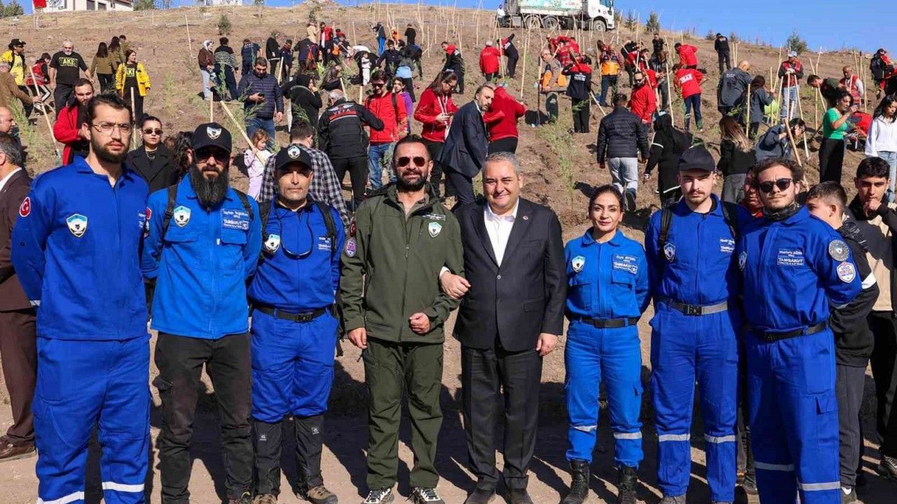 Konuşmaların ardından Özarslan ve beraberindekiler, 300 adet çam fidanını toprakla buluşturdu.