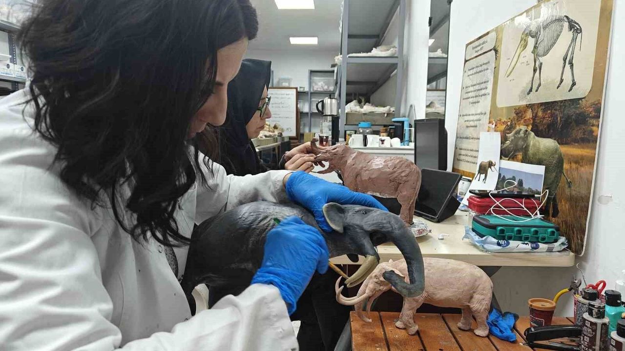 Yapılan çalışmalar ile ilgili bilgiler veren Uzman Antropolog Ömer Dağ, 'Burada görülen örnekler Yamula Barajı çevresinde çıkan 7,7 milyon yıl önceye tarihlendirilen faunamızın aslında minyatürleri. Burada file ait örneğimiz var, zürafaya ait örneğimiz var, gergedanımız var, kılıç dişli kaplanımız var. Bire bir anatomik ölçülerine bağlı kalarak Paleoart çalışmalarından da yola çıkarak biz bunların minyatür çalışmalarını gerçekleştiriyoruz. Öncelikle ilk aşamada bizim arkadaşlarımız ölçülerine bağlı kalarak minyatürünü oluşturuyor. Minyatür daha sonra 3D tarayıcılarla tarandıktan sonra yine 3D yazıcılarla basılarak ortaya çıkarılıyor. Ortaya çıkan ürün en sonunda boyanıp hazır hale geliyor' dedi.