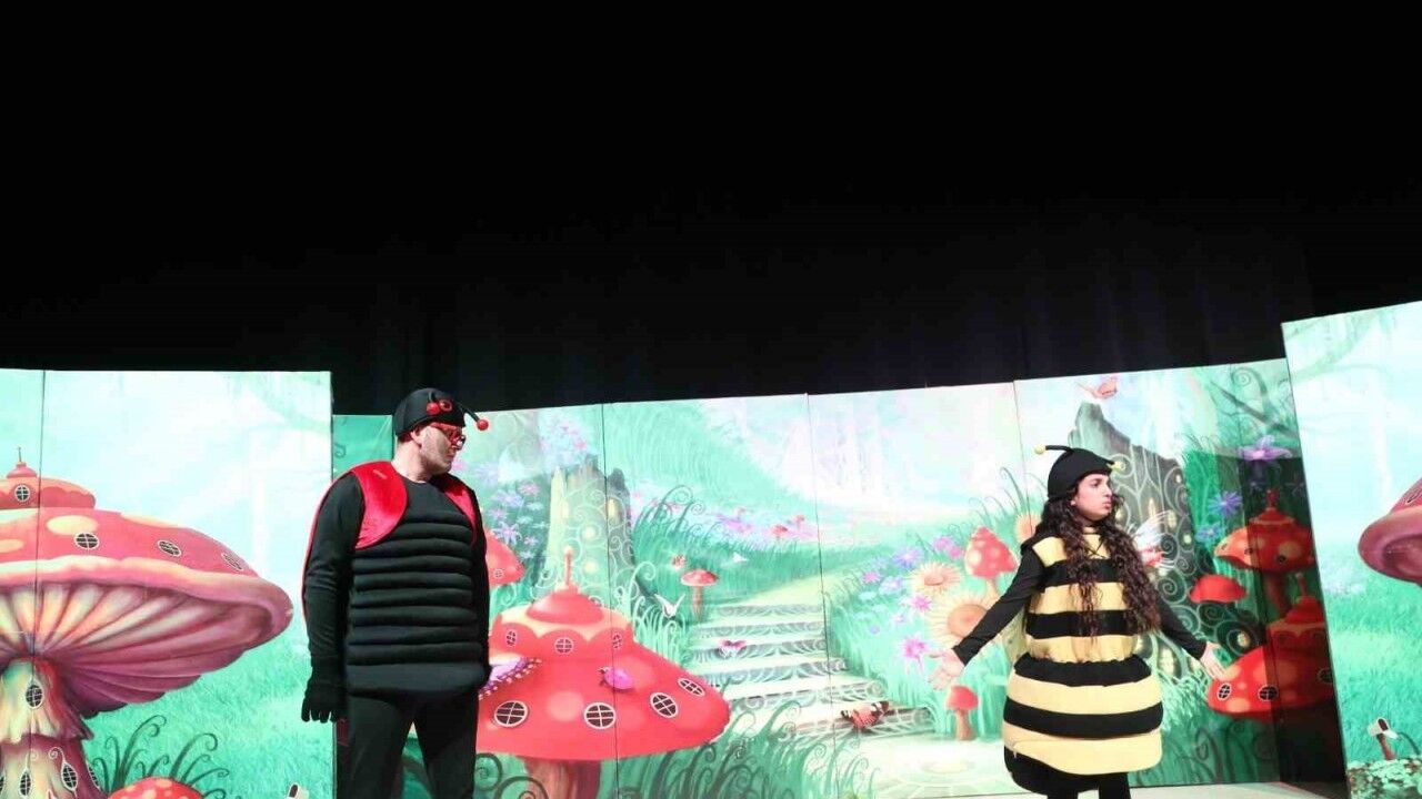 Renkli sahne dekorları ve eğlenceli hikayesiyle "Beneksiz Böcek Uğur" tiyatrosu, minik izleyicilerden tam not aldı.