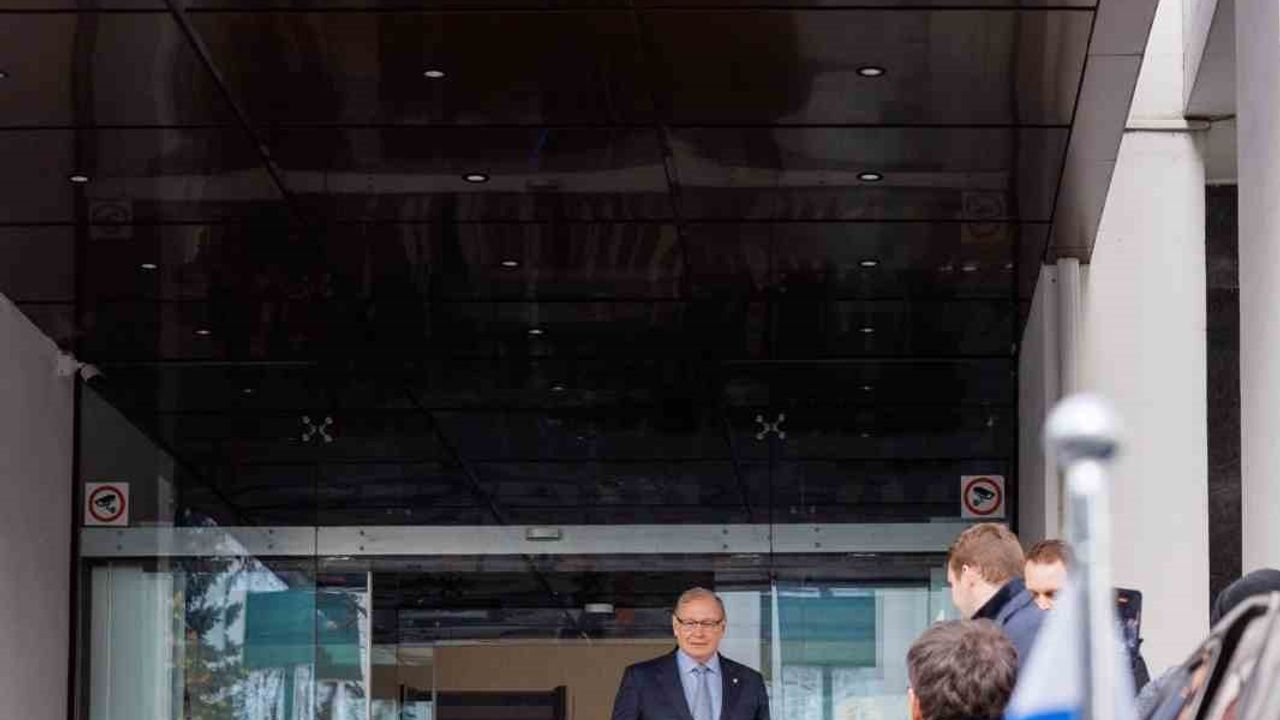 Moldova hava sahasını ihlal eden sağlam durumdaki bir dron, diplomatla yapılan görüşme sırasında bakanlık binasının önünde sergilendi.