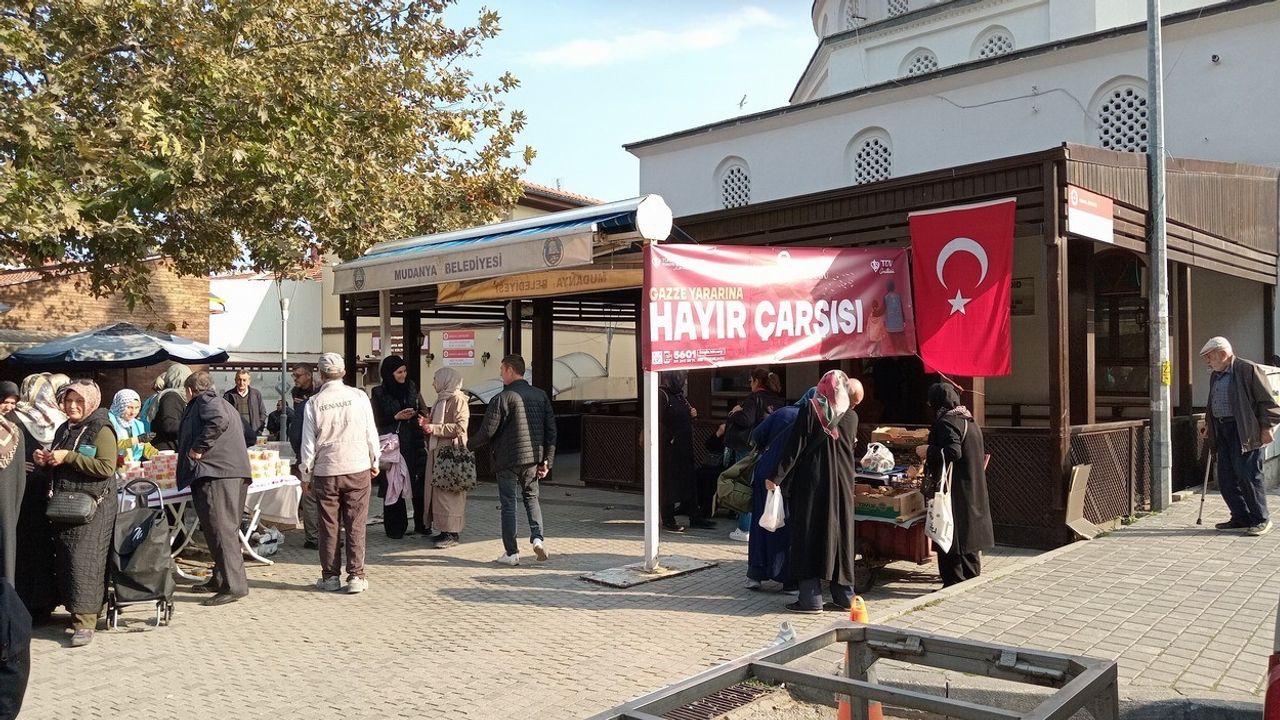 Mudanya Tekke-i Cedid (HAL) ve Hasanbey Camii avlusunda düzenlenen hayır panayırında TDV Mudanya Şubesi Kadın Kolları gönüllüleri tarafından yapılan çeşitli gıda ürünleri, giysi ve el işlerinden oluşan ürünler satışa sunuldu. Vatandaşlar tarafından yoğun ilgi gören panayırdan elde edilen gelirler Gazze’ye ulaştırılmak üzere TDV Mudanya Şubesine teslim edildi.