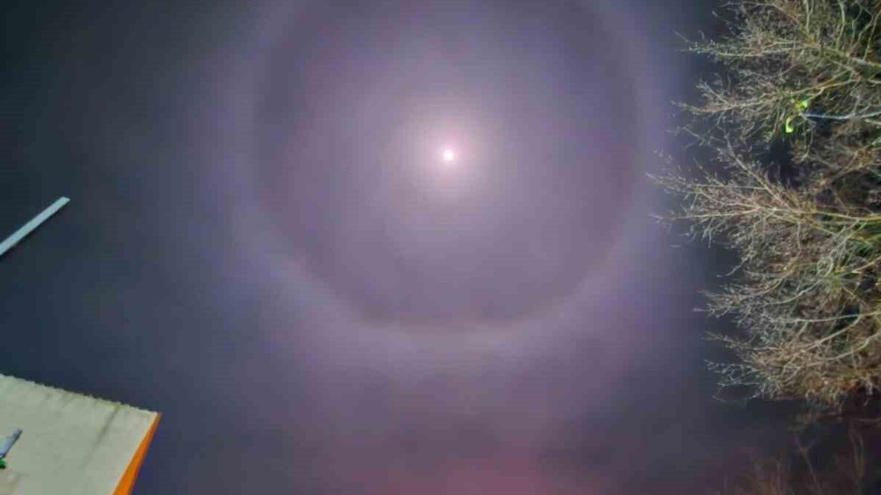 Tekirdağ'ın Muratlı ilçesinde akşam saatlerinde gökyüzüne bakan vatandaşlar, Ay'ın etrafında oluşan parlak ve tam dairesel bir halka ile karşılaştı. Görsel bir şölen sunan bu doğa olayı, bilimsel adıyla '22° Ay Halesi' olarak biliniyor.
