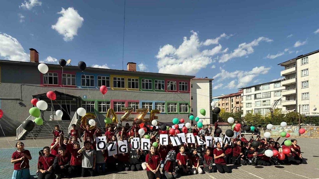 Muş’ta Vali Adil Yazar Ortaokulu öğrencileri, İsrail’in Gazze’ye yönelik saldırılarına tepki göstermek ve Filistin’e destek vermek amacıyla gökyüzüne balon bıraktı.