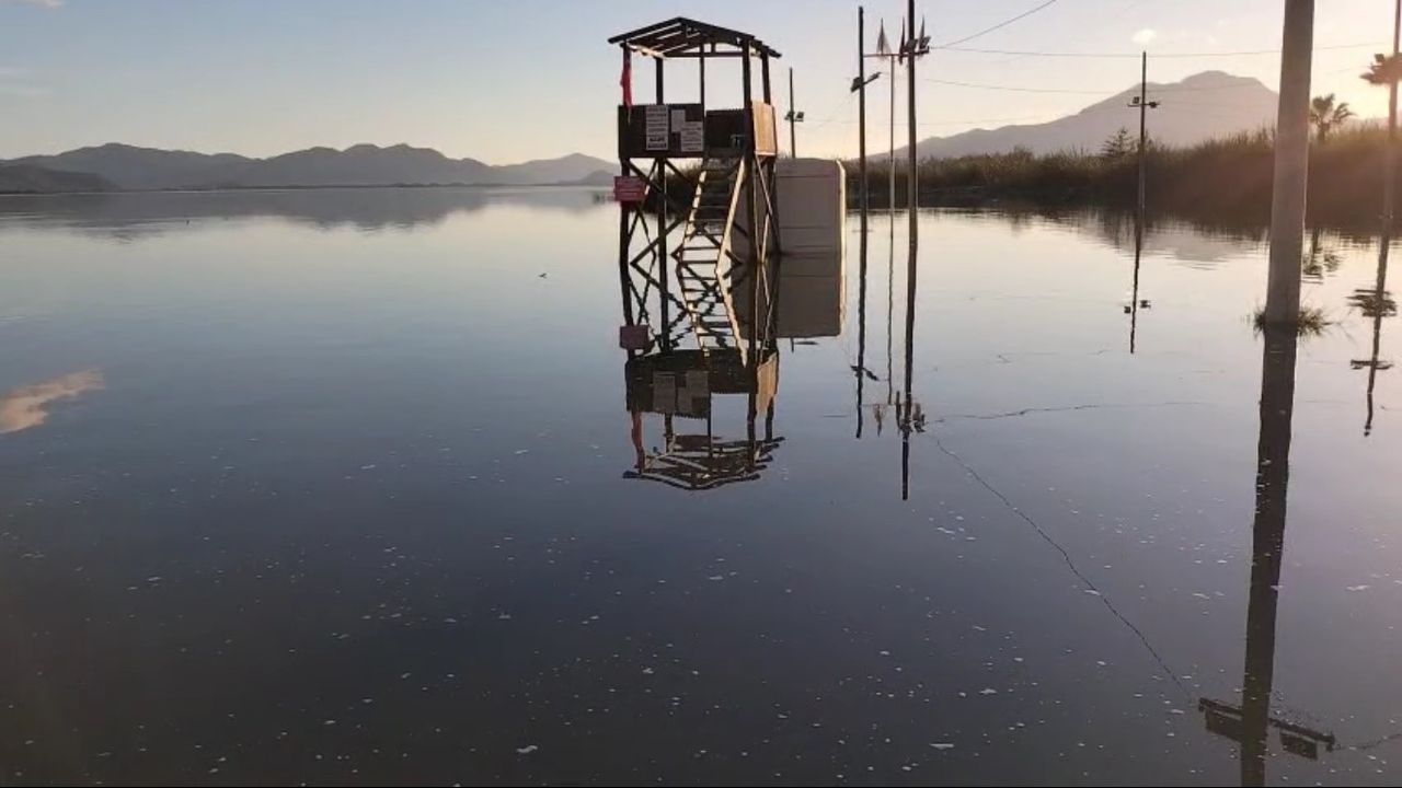 Muğla'nın Köyceğiz ilçesinde birkaç gündür aralıksız devam eden yağışlar sonrası Nam Nam Çayı, Kargıcak ve Yuvarlak Çayı'nın debisi yükselince taşan sular Köyceğiz Gölü'nde su seviyesini artırırken, Atatürk Kordonu'nun batı kısmı ile Delta Plajı sular altında kaldı.