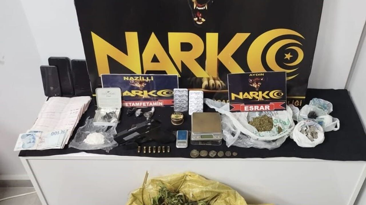 Edinilen bilgiye göre, Nazilli Narkotik Suçlarla Mücadele Büro Amirliği ekipleri Şirinevler ve Altıntaş mahallelerinde uyuşturucu madde ticareti yaptığı belirlenen 3 şahsı tespit etti. Ekipler, uzun süren teknik ve fiziki takibin ardından operasyon için düğmeye bastı. Zehir tacirlerine yönelik eş zamanlı gerçekleştirilen baskında L.Ç, M.Z. ve B.A. isimli 3 şüpheli ikametlerinde kıskıvrak yakalandı. Şüphelilerin evlerinde, üzerlerinde ve araçlarında yapılan aramada; 60 gram metamfetamin, 41 gram esrar, 20 adet sentetik ecza, 1 kök kenevir bitkisi, 2 hassas terazi, 1 ruhsatsız tabanca ve çok sayıda mermi, 25 bin lira nakit para ile yasaklı hint keneviri yetiştirmeye yönelik çeşitli cihaz ve sıvılar ele geçirildi.