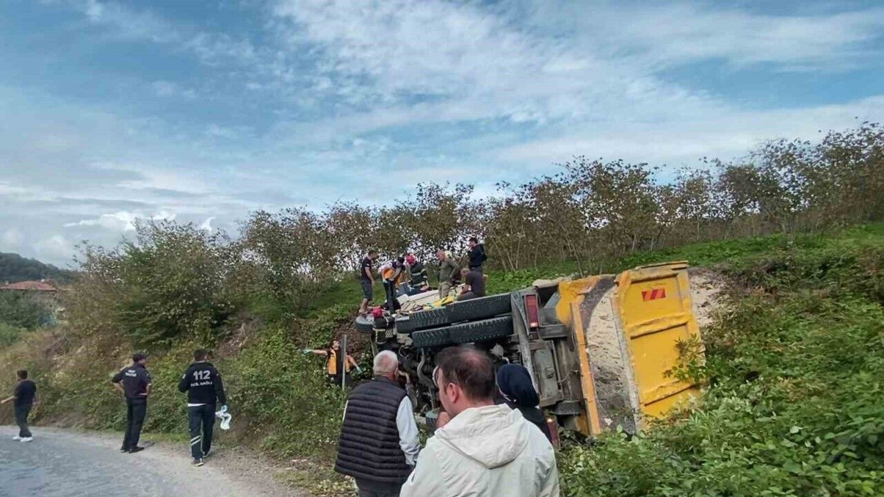 Kaza, Cevizdere Mahallesi Başköy yolu üzerinde meydana geldi. Edinilen bilgiye göre, Ünye ilçe merkezine seyir halinde olan Samet A. idaresindeki kil yüklü kamyon, kontrolden çıkarak devrildi. Kazayı gören çevredeki vatandaşlar durumu 112 Acil Çağrı Merkezi’ne bildirdi. Olay yerine jandarma, sağlık ve Ordu Büyükşehir Belediyesi’ne bağlı Ünye İtfaiye Amirliği ekipleri sevk edildi. İtfaiye ekipleri, araç içerisinde sıkışan kamyon sürücüsü Samet A.’yı bulunduğu yerden çıkararak sağlık ekiplerine teslim etti. Kazada yaralanan sürücü ve Yusuf Ö., olay yerinde yapılan ilk müdahalenin ardından Ünye Devlet Hastanesine kaldırılarak tedavi altına alındı. Yaralıların sağlık durumlarının iyi olduğu öğrenilirken, kazayla ilgili inceleme başlatıldı.