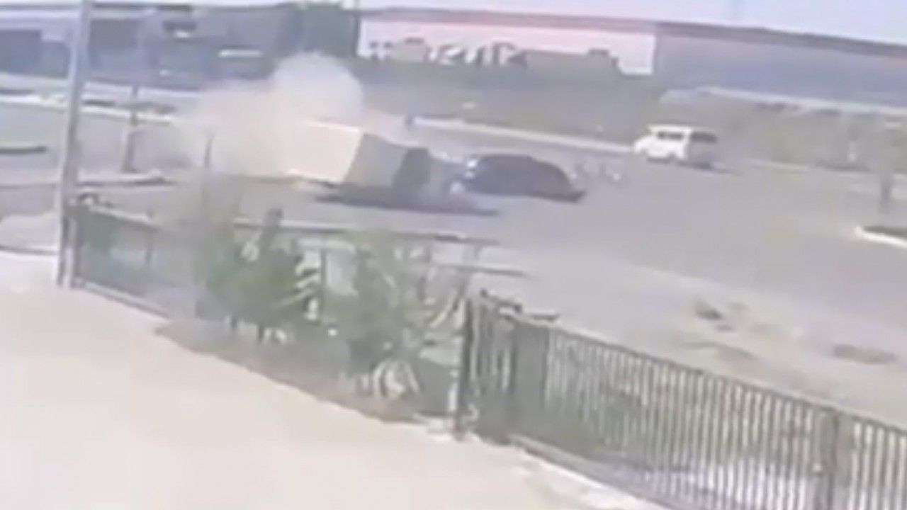 Kaza anı ise yol kenarında bulunan bir iş yerinin güvenlik kamerasına yansıdı. Güvenlik kamerası görüntüsünde kamyonetin cadde üzerinden seyrettiği, otomobilin ise dönel kavşaktan dönerek kamyonetle çarpıştığı görülüyor.