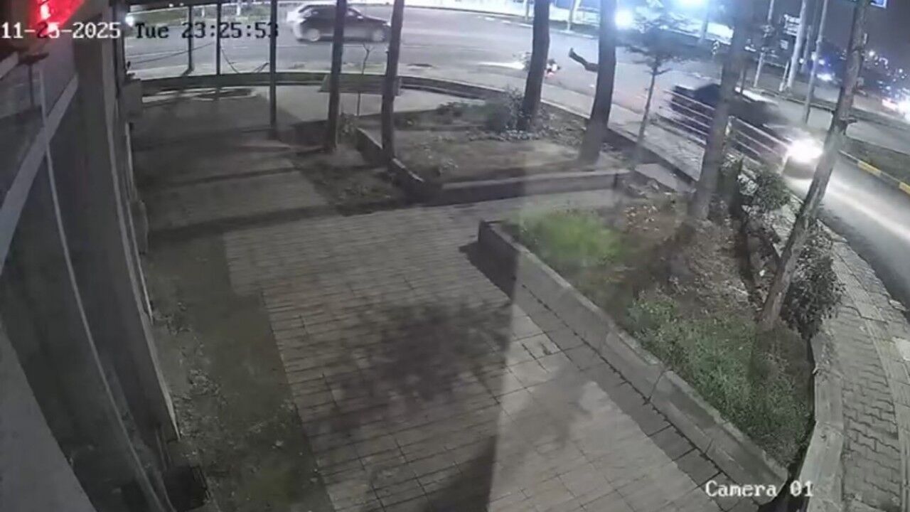 Tedavi altına alınan yaralının sağlık durumunun iyi olduğu öğrenilirken kaza anı bir iş yerinin güvenlik kamerasına saniye saniye yansıdı.