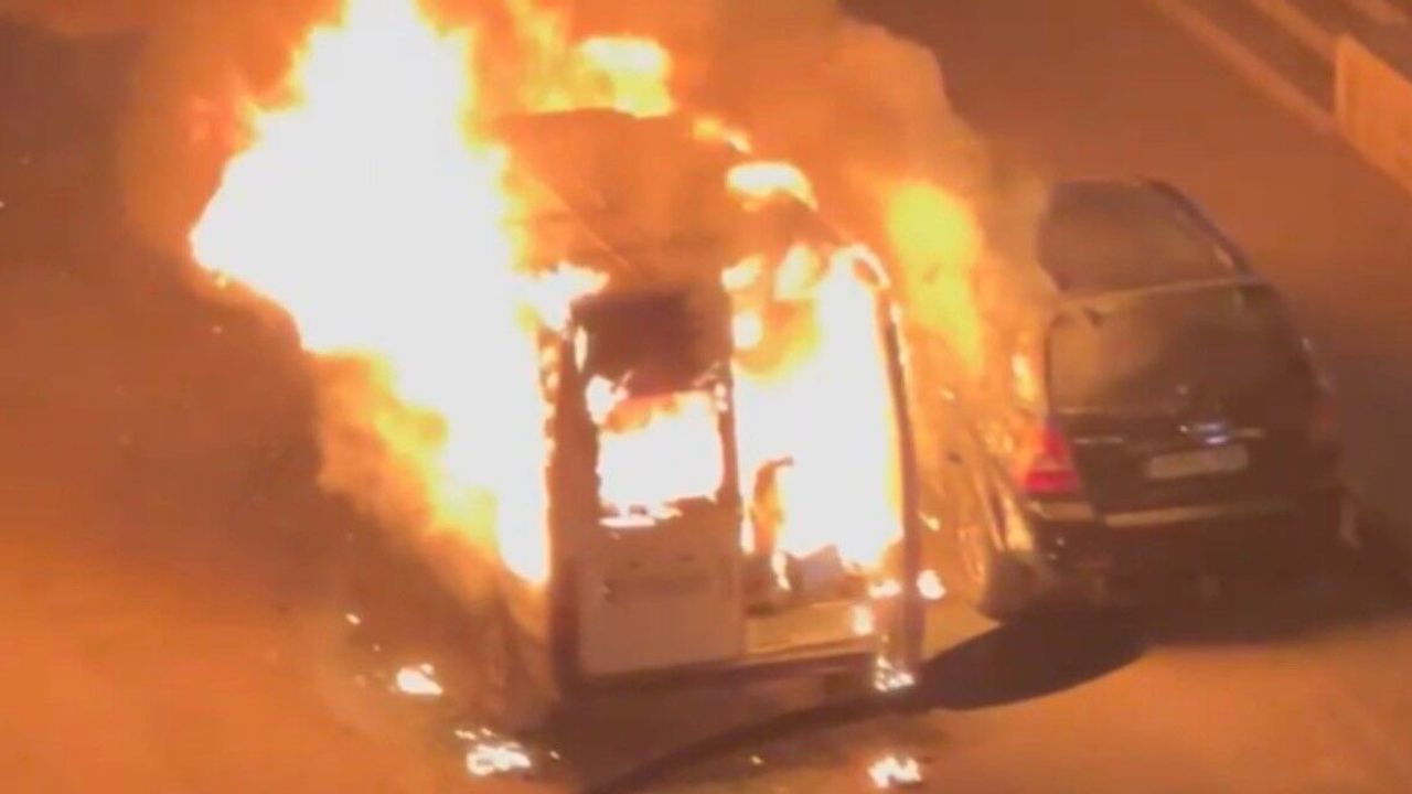 Gaziantep’in Nizip ilçesinde park halindeki minibüs alev topuna döndü. Yangında minibüsün yanında park halinde bulunan ve yeni alındığı öğrenilen otomobil de zarar gördü.