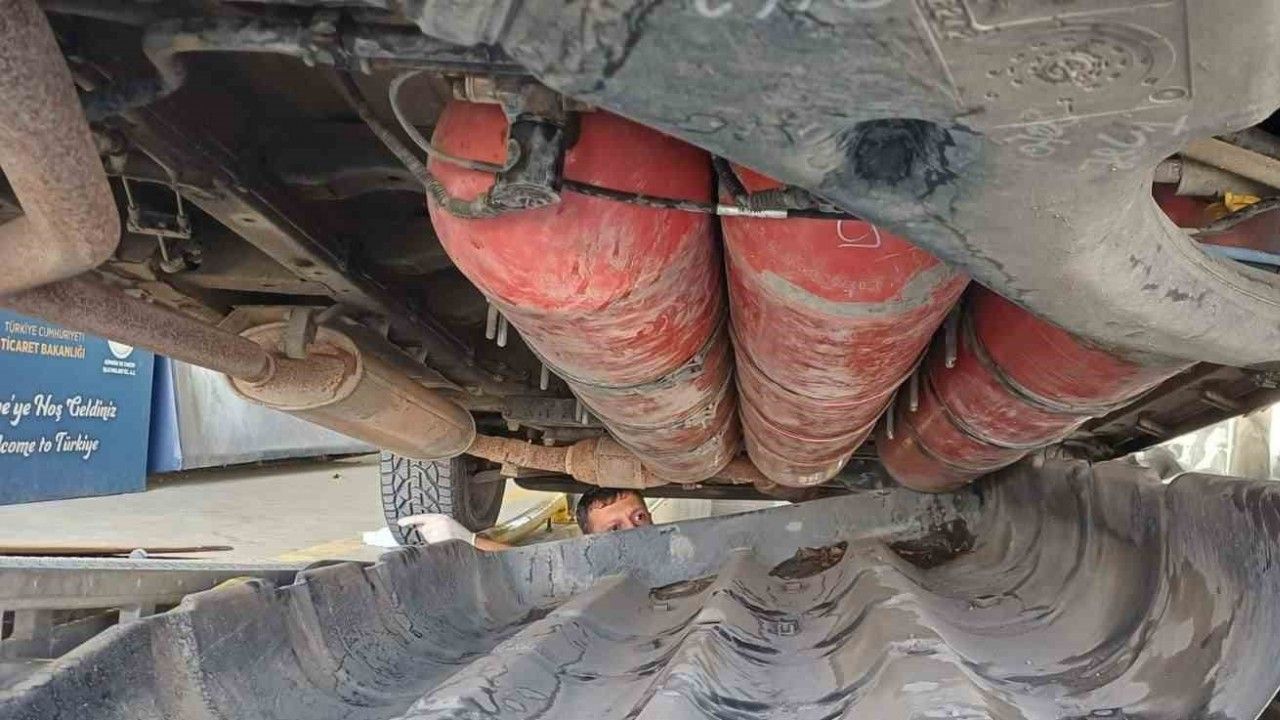 Araç, memur refakatinde arama hangarına alınarak detaylı kontrol edildi. Narkotik dedektör köpeği Bodri de LPG tanklarına tepki vermesi üzerine yapılan incelemede, tankların içine gizlenmiş uyuşturucu madde bulundu.