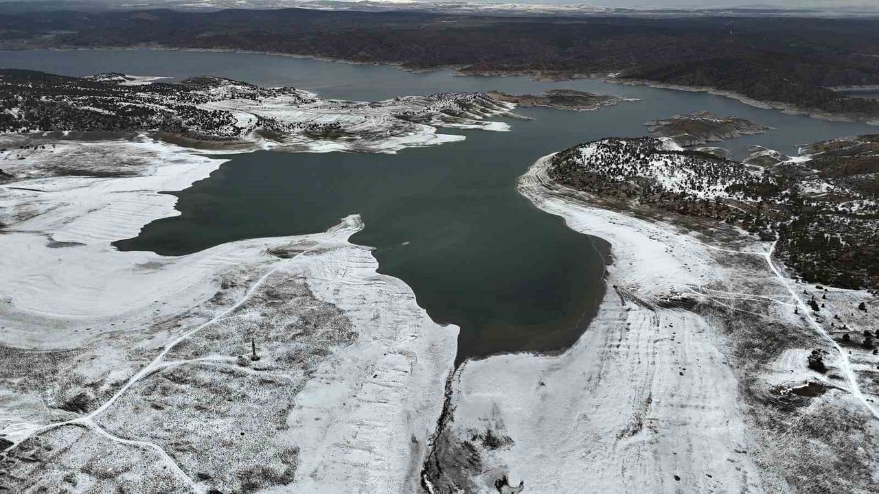 Eskişehir'in içme ve kullanma suyunun sağlanması ile sulamada kullanılan 454 milyon metreküp işletme hacmine sahip Kütahya'nın Kalburcu Çiftliği Mahallesi'nde bulunan Porsuk Barajı'nın karla kaplı hali dronla görüntülendi. Beyaza bürünen baraj manzarası güzel görüntüler sundu. Fakat 2024 yılının Nisan ayında aynı noktadan çekilen görüntülerle şu ankiler karşılaştırıldığında, kışa rağmen geriye çekilen su göze çarptı. Geçtiğimiz Ağustos ayında ise Porsuk Barajı'nın doluluk oranı yüzde 35 olarak açıklanmıştı.