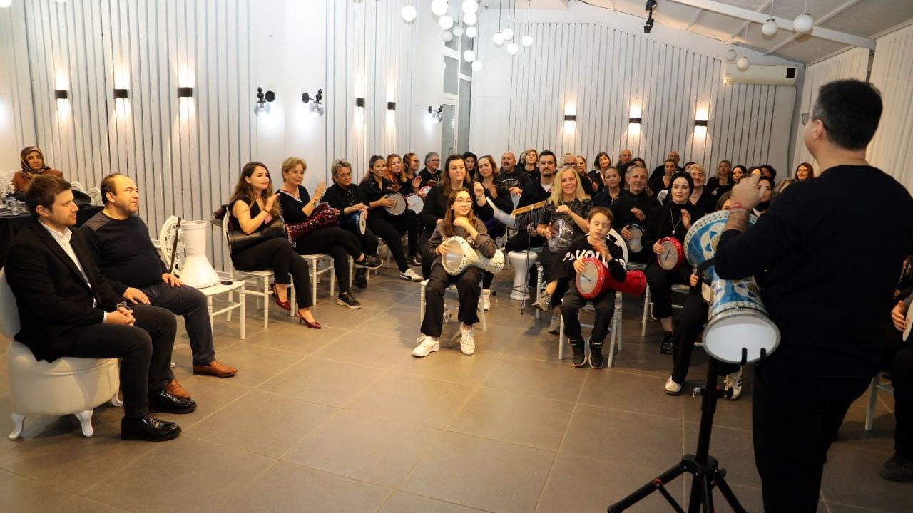 Perküsyon Öğretmeni Mehmet Yıldız, 'Biz grupla aile olduk artık çünkü yaklaşık 3 yıldan beri birlikteyiz. 5 ayrı yerde konserlerimiz oldu. Önceliğimiz sosyal aktivite, birbirini tanımayan insanlar burada dostluğu, güzelliği, arkadaşlığı aynı ritimde buluşmayı öğreniyorlar. Burası insanlar için günün yoğunluğunu ve yorgunluğu attıkları bir yer. Eğleniyorlar, coşuyorlar dans ediyorlar. 7'den 70'e herkes burada. İlkokula giden öğrencilerimiz, emekliler ve sağlıkçılarımız var. Tatlı bir yorgunluk oluyor ama değiyor' dedi.