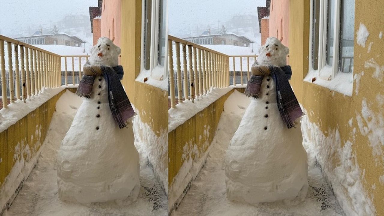 HAKKARİ (İHA) - Hakkari'de etkili olan kar yağışını fırsata çeviren sağlık çalışanlarının balkonda yaptıkları kardan adam büyük ilgi gördü.