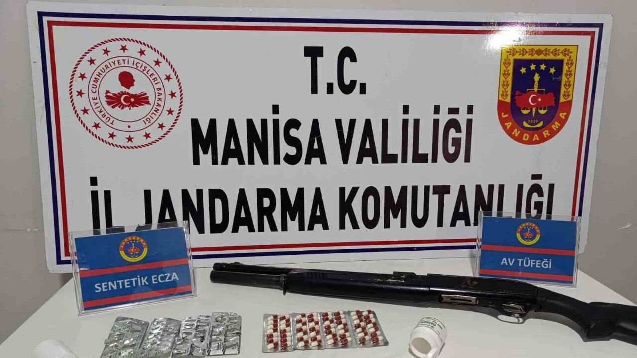 Manisa’nın Salihli ilçesinde jandarma ekipleri tarafından bir eve düzenlenen operasyonda uyuşturucu haplar ve av tüfeği ele geçirildi.