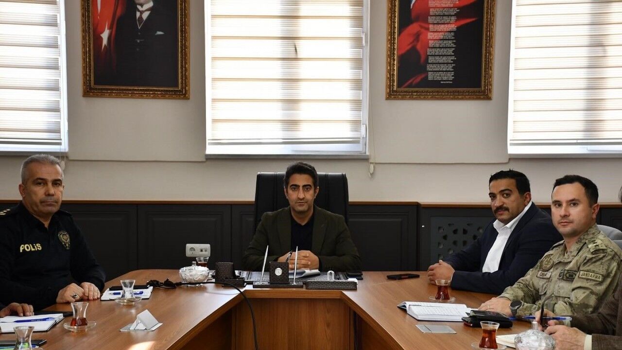 Kaymakamlık toplantı salonunda Kaymakam Enis Aslantatar, başkanlığında yapılan toplantıya ilçe protokolü, kurum amirleri ve ilgili birim temsilcileri katıldı.