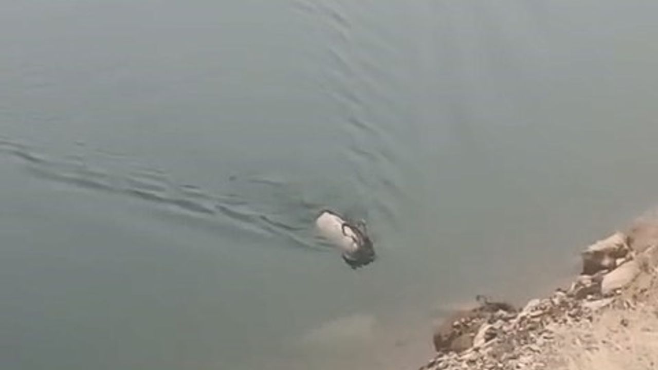 Elazığ'ın Karakoçan ilçesinde sarp kayalıklara tırmanma özellikleri ile tanınan koruma altındaki dağ keçisi, bu sefer Özlüce Baraj Gölü'nde yüzerken görüldü.