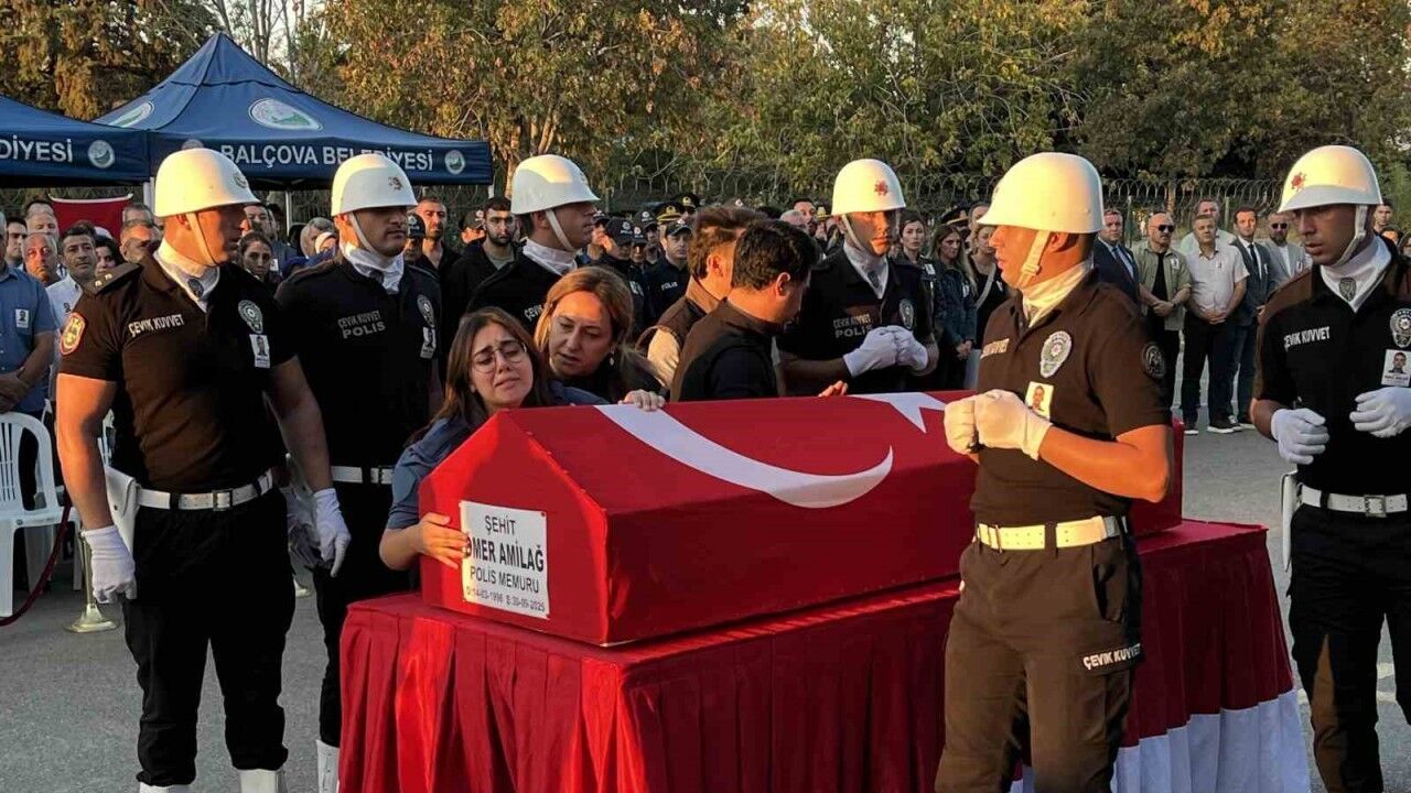 İzmir’in Balçova ilçesinde polis merkezine düzenlenen silahlı saldırıda ağır yaralanan polis memuru Ömer Amilağ (29), tedavi gördüğü hastanede 23 günlük yaşam mücadelesini kaybederek şehit oldu. Şehit polis için görev yaptığı Balçova İlçe Emniyet Müdürlüğünde tören düzenlenirken, şehidin nişanlısı "Ne olur Ömer’imi götürmeyin" diye feryat etti.