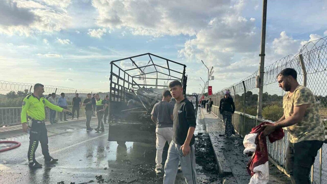 Edinilen bilgiye göre olay, Şanlıurfa’nın Birecik ilçesinde Fırat Nehri üzerindeki Birecik Köprüsü’nde yaşandı. Birecik istikametinden Gaziantep istikametine giden Mehmet A.’nın kullandığı 38 AIZ 651 plakalı tekstil malzemesi yüklü kamyonetin arka kısmından alevler yükseldi.
