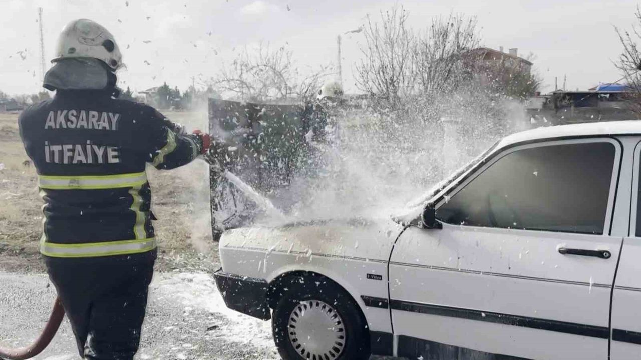 Aksaray'da seyir halindeyken dumanlar çıkan otomobilin motor kısmı alev alev yandı.