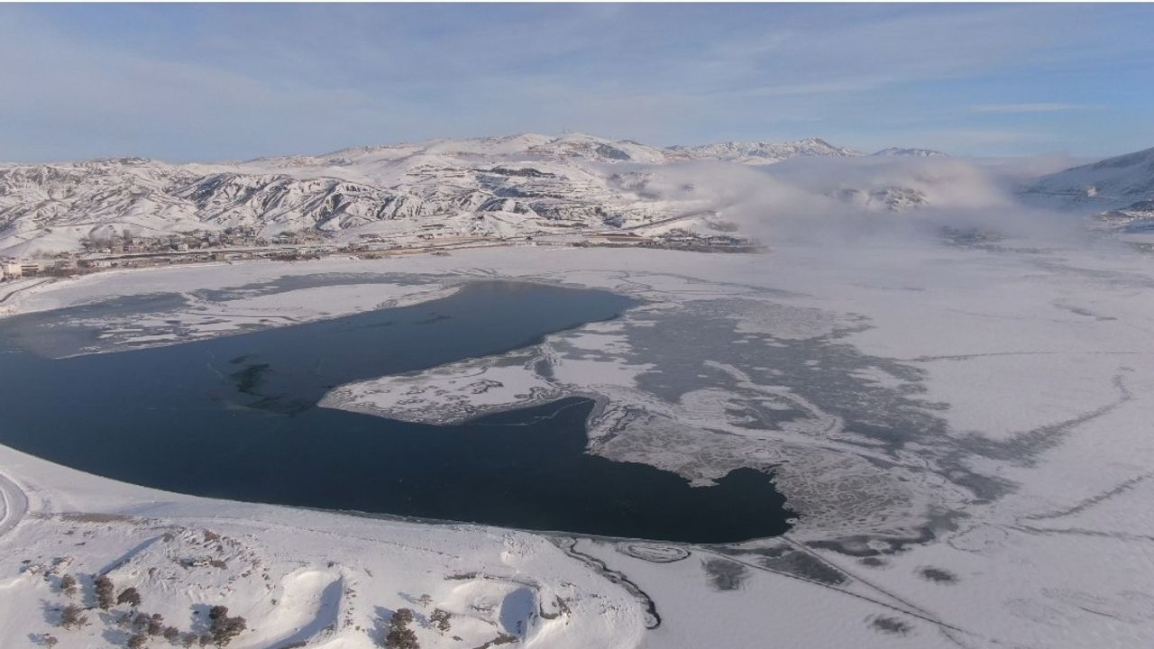 Sibirya soğuklarının hakim olduğu Van'da Sıhke Göleti'nin yüzeyi tamamen dondu.