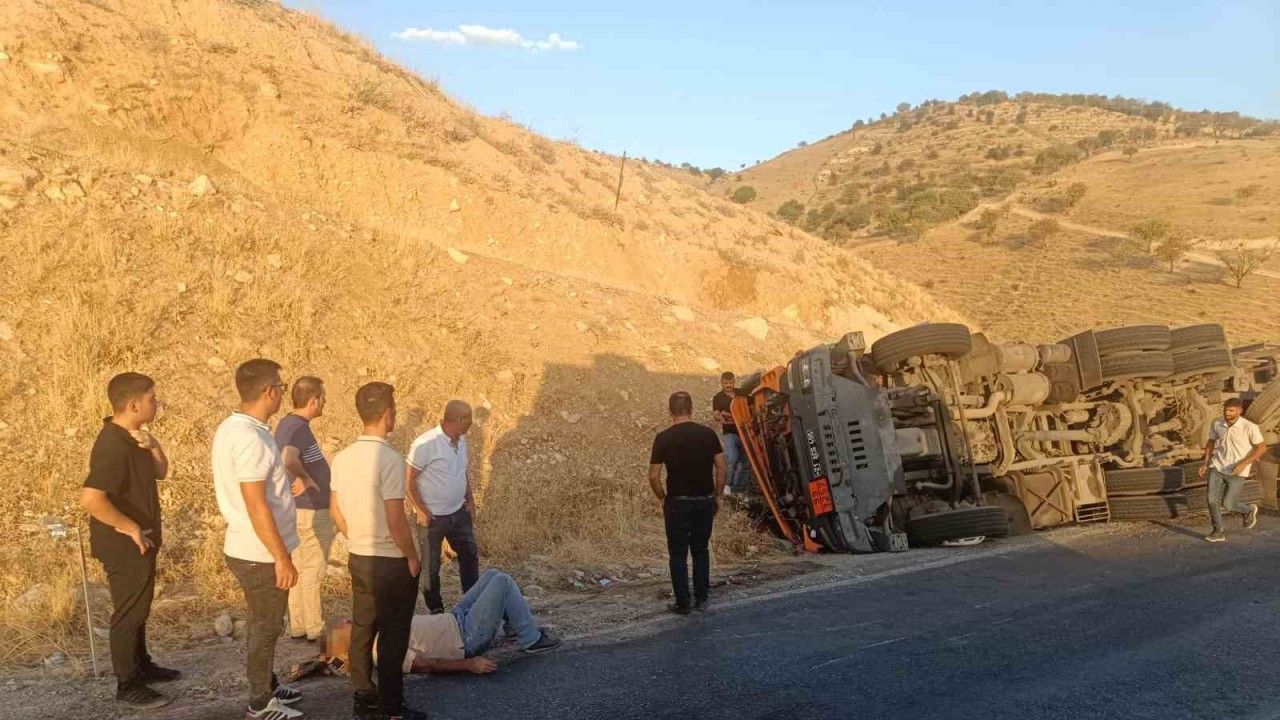 Siirt’te virajı alamayarak devrilen tırın sürücüsü yaralandı.