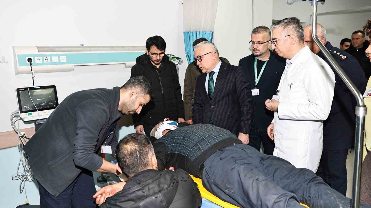 Sivas Valisi Yılmaz Şimşek, sabah saatlerinde merkeze bağlı Alahacı köyü yakınlarında meydana gelen kazada yaralanan öğrencileri hastanede ziyaret etti.