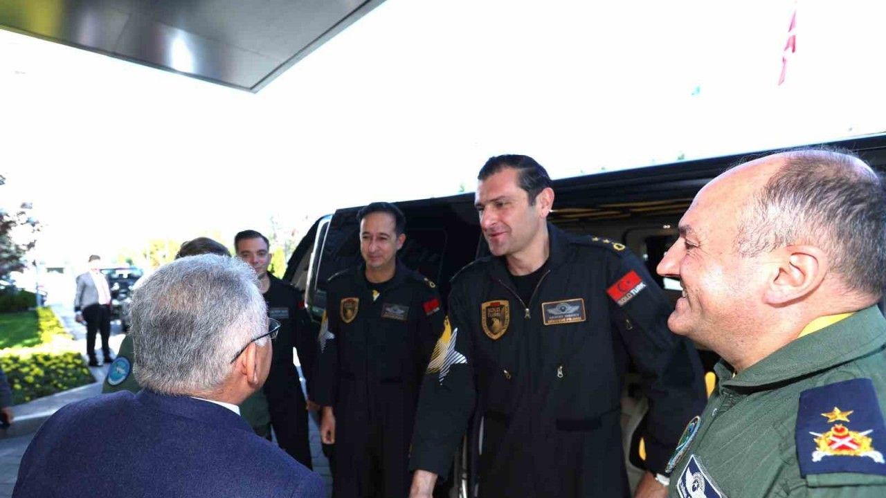 Kayseri Büyükşehir Belediye Başkanı Dr. Memduh Büyükkılıç, Türkiye’nin gururu SOLOTÜRK’ün 1. Pilotu Yarbay Murat Bakıcı ve Garnizon Komutanı Hava Pilot Tuğgeneral Hasan Volkan Güleryüz’ü başkanlık makamında ağırladı. Ziyaret, 17-19 Ekim tarihleri arasında düzenlenecek olan ve bu yıl 7’ncisi gerçekleşecek Kayseri Bilim Festivali kapsamında yapılacak SOLOTÜRK gösteri uçuşu öncesinde gerçekleşti. Festivalin ikinci günü olan 18 Ekim’de, Recep Tayyip Erdoğan Millet Bahçesi semalarında nefes kesici bir performans sergileyecek olan SOLOTÜRK, bu ziyaretle Kayseri halkına verdiği önemi bir kez daha gösterdi.