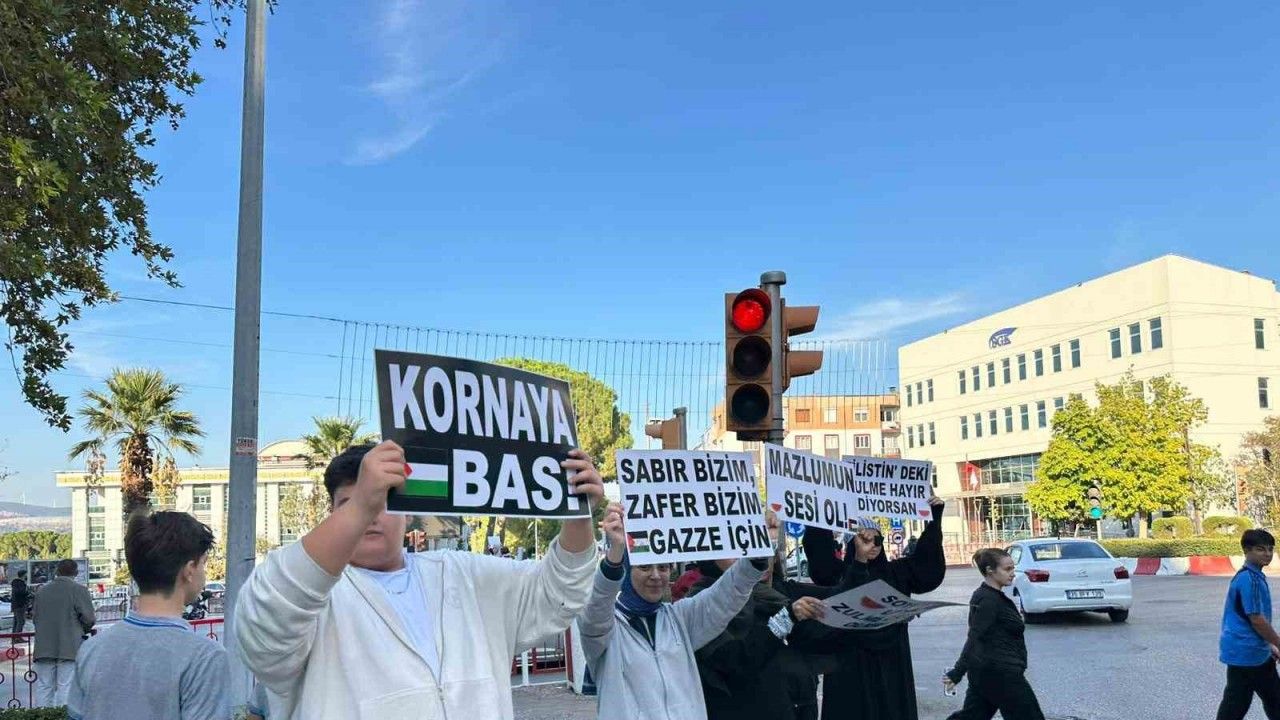 Manisa’nın Soma ilçesinde vatandaşlar ve öğrenciler, "Filistin için korna bas" pankartlarıyla düzenlenen eylemde Gazze’deki çocuklara destek verdi.