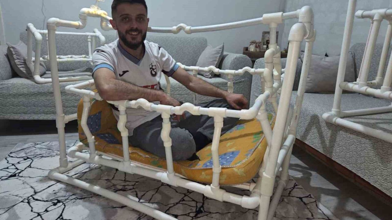 Karadağ, '10 yılı aşkın bir süredir su tesisatçısıyım. 3 yıldır evliyim. Allah bir çocuk nasip ederse ona manevi bir hediye bırakmak istiyordum. 1 ay sonra eşim doğum yapacağından bir hazırlık yapayım dedim. Su borularından beşik yapmayı kafamda tasarladım. Bir ölçü almadan gelişigüzel bir şekilde evde yaptım. İçine girdiğim beşikte kavis adlı malzeme kullandığından biraz maliyetli. Bu beşikte 2-3 boy boru, 25-20 adet T boru ile yaptım. Akşamları evde olduğum zamanlarda yaptım. 3 saat gibi bir sürede beşiği bitirdim. Beşiği internete atınca insanlar, 'ne kadar sağlam, süs için mi yapılmış' demesin diye içine girdim. Yaklaşık 60 kiloyum. İçine girip sallandım ve bir sıkıntı olmadı. Sosyal medyaya da bu görüntülere attım. Sadece bir platformda 1,6 milyon kişi tarafından izlendi. Diğer platformlarda da yine hatırı sayılır bir izlenme aldı. İsteyene bu beşiklerden yapabilirim. Videodan sonra çok ulaşan oldu. Birkaç kişiye de yapıp gönderdim. Onlar da gayet başarılı buldu' dedi.
