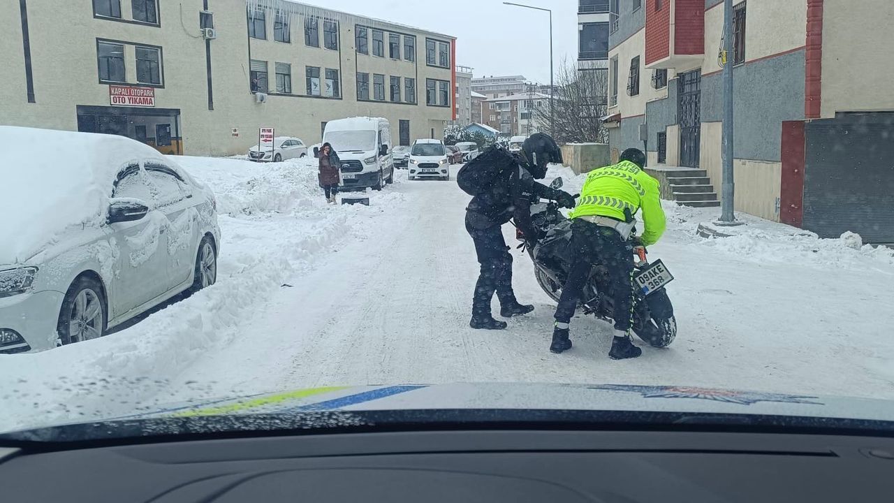 Ekipler, bazı noktalarda trafiğin akışını düzenlerken, uzun süre yolda beklemek zorunda kalan sürücülere ise kumanya dağıttı. Yoldan çıkan araçları kurtarmak için ellerine kürek alan ekipler, kar küreyerek araçları bulundukları yerden itip güvenli alanlara çıkardı.