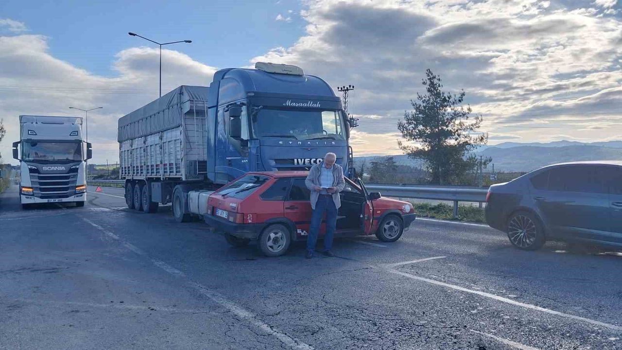 Edinilen bilgiye göre, Sinop istikametine seyir halinde olan 55 NE 898 plakalı tır, aynı yönde ilerleyen 55 ATY 35 plakalı otomobile arkadan çarptı. Çarpmanın etkisiyle otomobil tırın önünde yaklaşık 20 metre sürüklendi.