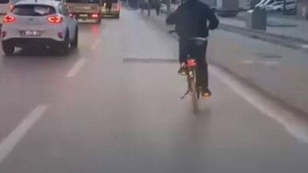 İlk olarak yolun ortasında ilerleyen bir bisikletli, araçların arasında hiçbir güvenlik önlemi olmadan seyrine devam etti. Ardından ise bir genç, seyir halindeki halk otobüsünün arka tamponuna tutunarak gizli yolculuk yaptı. Her iki genç de tehlikeye aldırış etmeden yollarına devam ederken, bu anlar saniye saniye kameraya yansıdı.