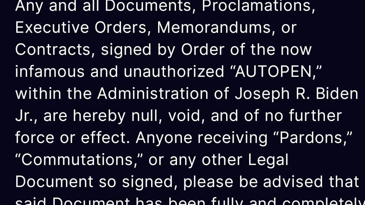ABD Başkanı Donald Trump, selefi Joe Biden döneminde 'Autopen' (imza makinesi) ile imzalanmış tüm belgelerin artık geçersiz olduğunu belirterek, 'Af, ceza indirimi veya bu şekilde imzalanmış başka bir belge alan herkes, söz konusu belgenin hiçbir yasal etkisinin olmadığını unutmamalıdır' açıklamasında bulundu.