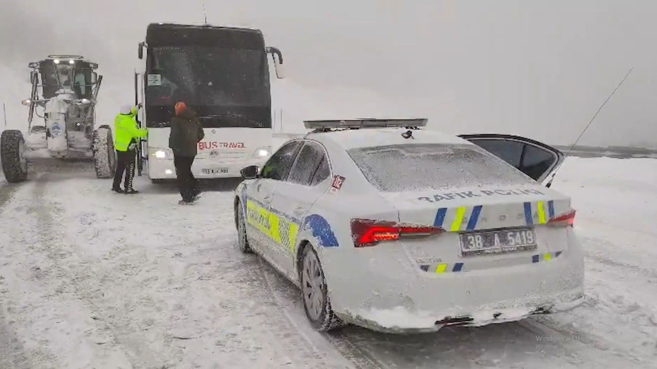 Kayseri - Erciyes yolu üzerinde bir tur otobüsü, yoğun kar yağışı ve tipi nedeniyle mahsur kaldı. Durumun bildirilmesi üzerine İl Emniyet Müdürlüğü Trafik Denetleme Şube Müdürlüğü ekipleri harekete geçti. Otobüse ulaşan ekipler, donma tehlikesi yaşayan 44 kişiyi kurtararak şehir merkezine sevk etti.