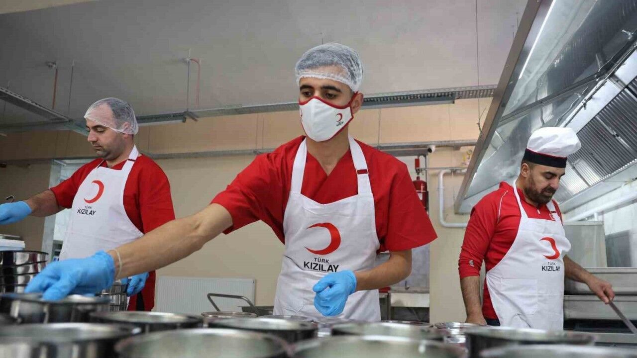 Türk Kızılay Elazığ Şubesi tarafından kurulan 12 bin kişi kapasiteli aşevinde, şimdilik 200 ihtiyaç sahibine her gün sıcak yemek ulaştırılıyor.