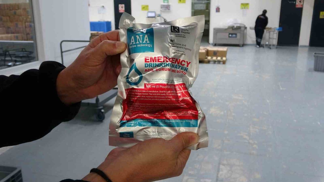 Beşikdüzü Organize Sanayi Bölgesi'nde faaliyet gösteren Akana Deniz Teknolojileri'nde görevli Endüstri Mühendisi Mehmet Saygın, Türkiye'de hem acil durum gıdasını hem acil durum suyunu üreten tek firma olduklarını söyledi.