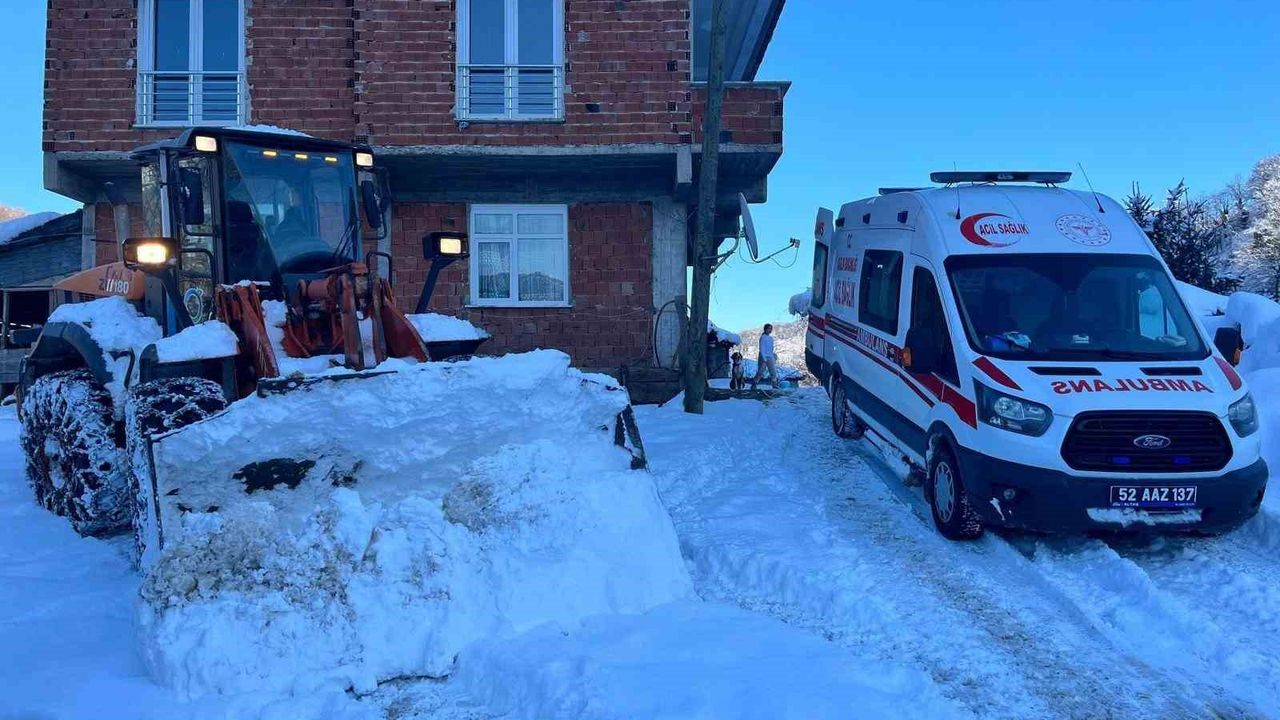 Ordu'nun Ulubey ilçesinde, etkili olan kar yağışının ardından yolların açık tutulması için yoğun çalışma yürütüldü.