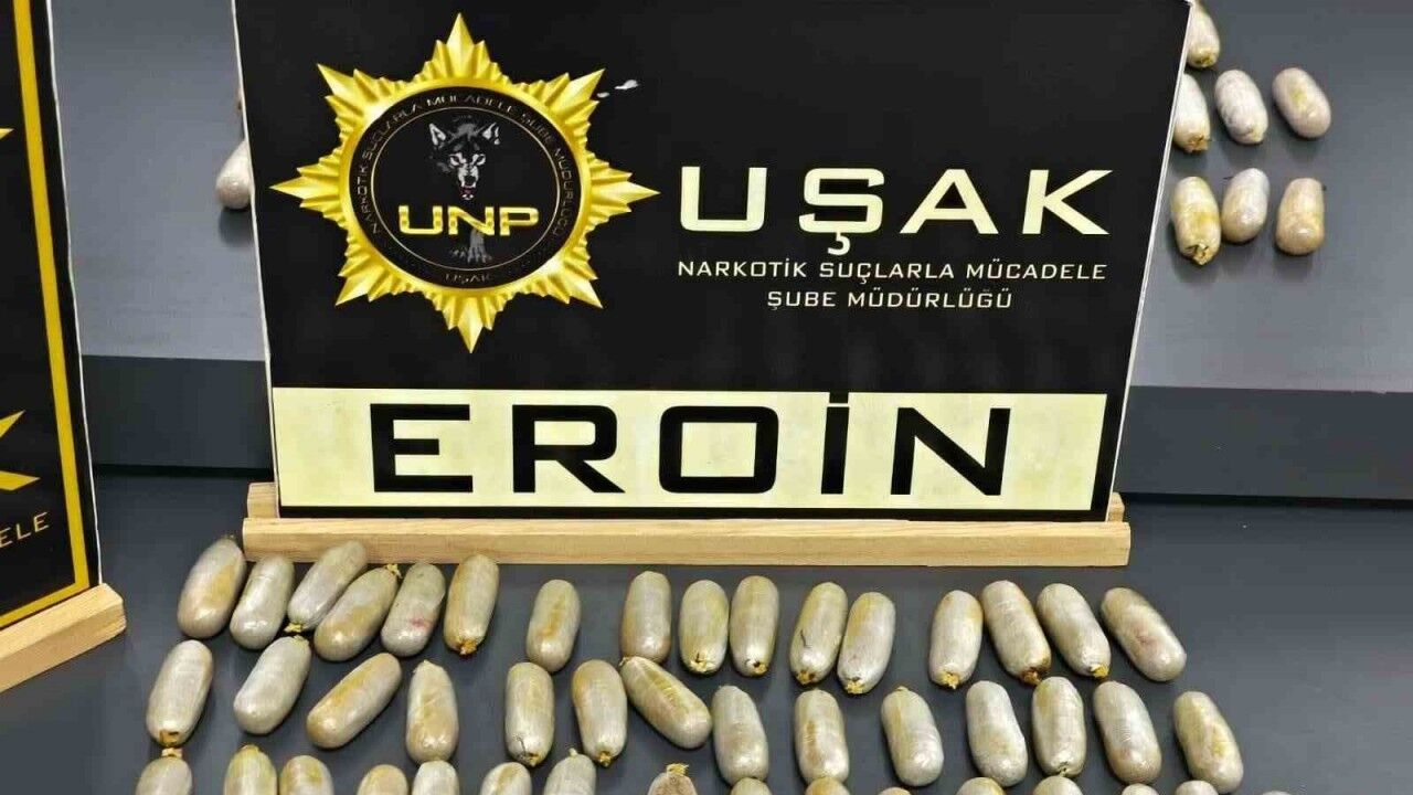 Uşak’ta narkotik ekiplerinin yürüttüğü operasyonda midelerinde 145 kapsül içinde toplam 1 kilo 100 gram eroin taşıyan iki şüpheli tutuklandı.