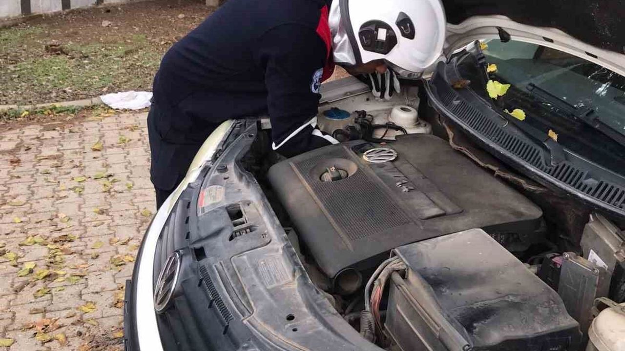 Hatay'da soğuk havada üşüyerek park halindeki otomobilin motor kısmına giren kediyi itfaiye ekibi kurtardı.
