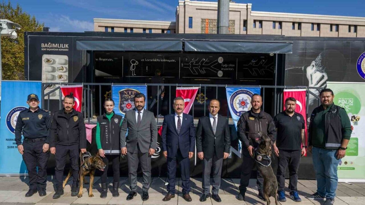 Eskişehir Valisi Hüseyin Aksoy, vatandaşları bilgilendirmek için gelen Narko Tırı’na ziyarette bulundu.