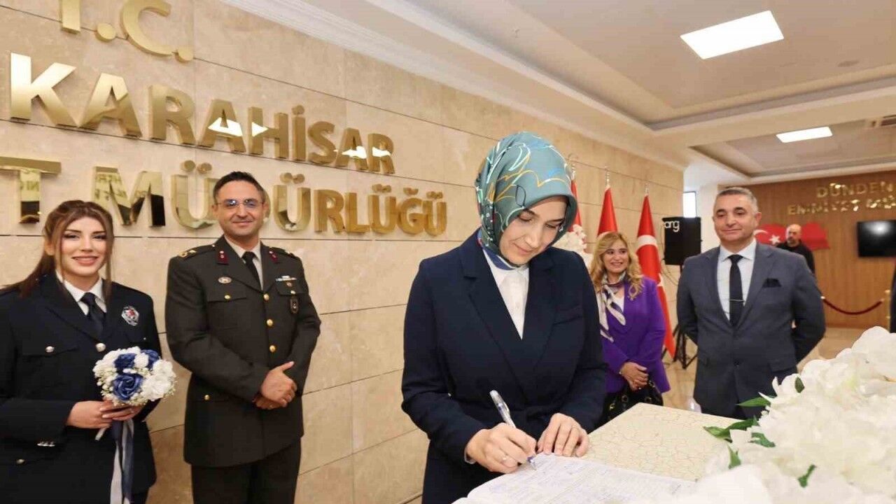 Afyonkarahisar Valisi Doç. Dr. Kübra Güran Yiğitbaşı, evliliğe adım atan polis memuru ile subay çiftin nikahlarına şahitlik yaptı.