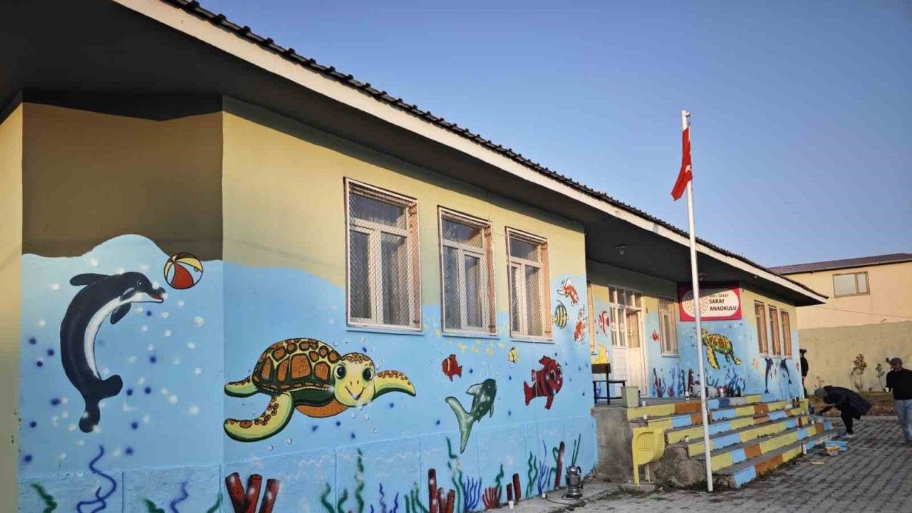 Van Güzel Sanatlar Lisesi öğrencileri, sosyal sorumluluk faaliyetleri kapsamında Saray ilçesindeki bir anaokulunun duvarlarını renkli ve eğitici resimlerle boyayarak okul ortamına canlılık kazandırdı.