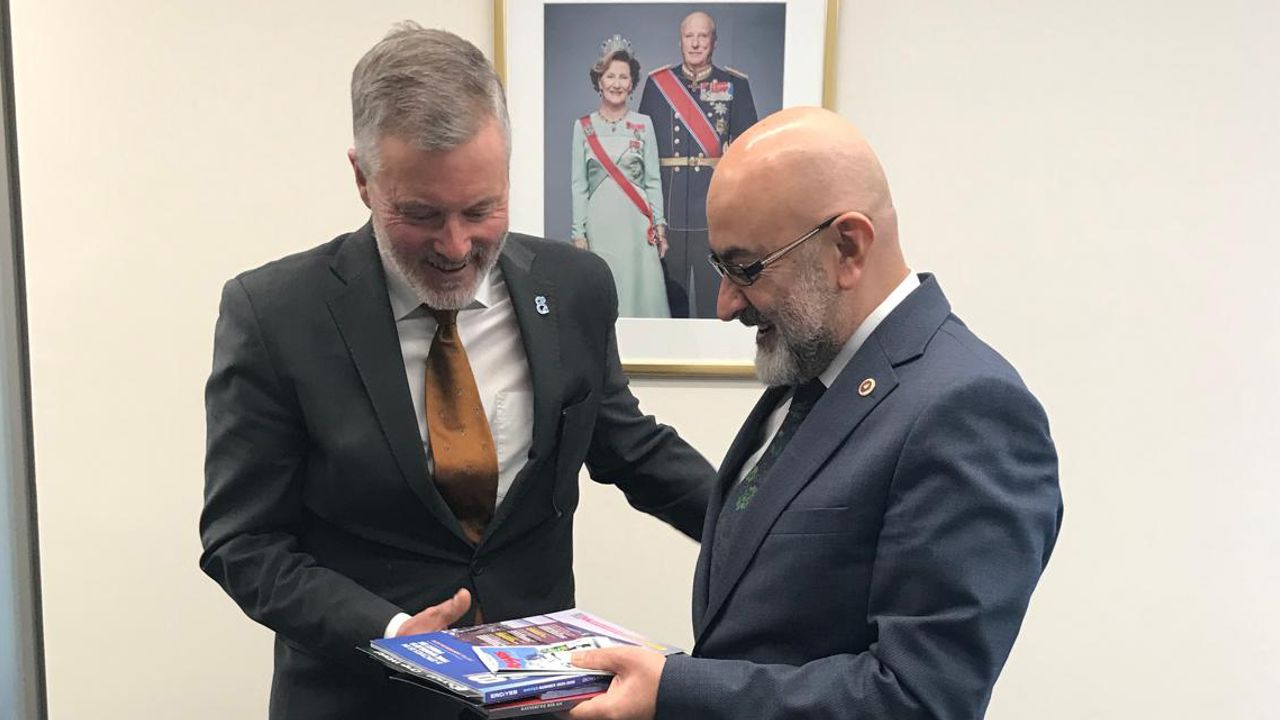 AB üyesi olmayan ama dünyada refahın en yüksek olduğu Avrupa ülkelerinden NORVEÇ’in Türkiye Büyükelçisi Sayın Andreas Gaarder’i makamında ziyaret ederek Kayserimizle Norveç arasındaki bağı kuvvetlendirmek için neler yapılabileceğini konuştuk.