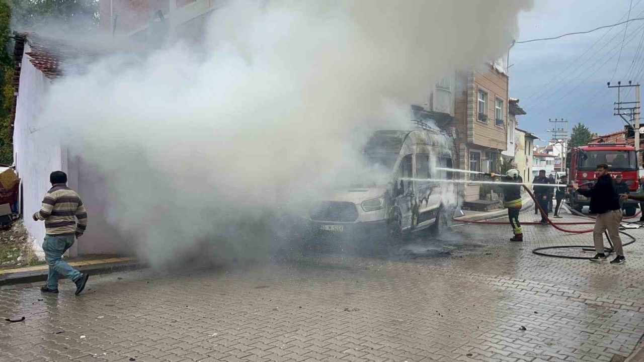 Samsun’un Vezirköprü ilçesinde park halindeki bir minibüs, belirlenemeyen bir nedenle alev aldı.