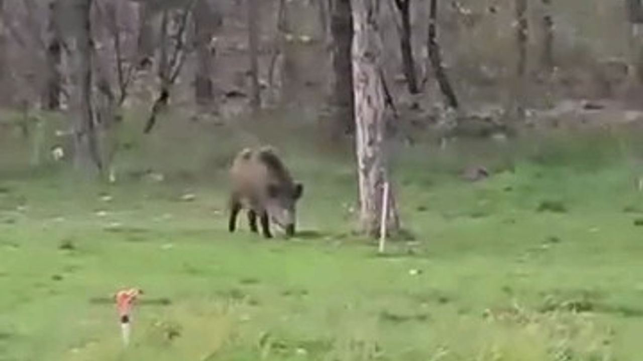 Edirne'de Trakya Üniversitesi Balkan Yerleşkesi çevresinde görüntülenen bir yaban domuzu, öğrenciler arasında esprili yorumlara sebep oldu.