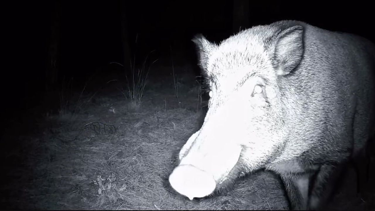 Tekirdağ'da bulunan Ganos Dağları'nda yaban hayatını izlemek amacıyla kurulan fotokapana yaklaşan yaban domuzu, ilk etapta kamerayı bağlı olduğu yerden çıkarmaya çalıştı. Uzun süre fotokapanın kemeri ve gövdesiyle uğraşan domuz, çabalarına rağmen başarılı olamayınca bölgeden uzaklaştı.