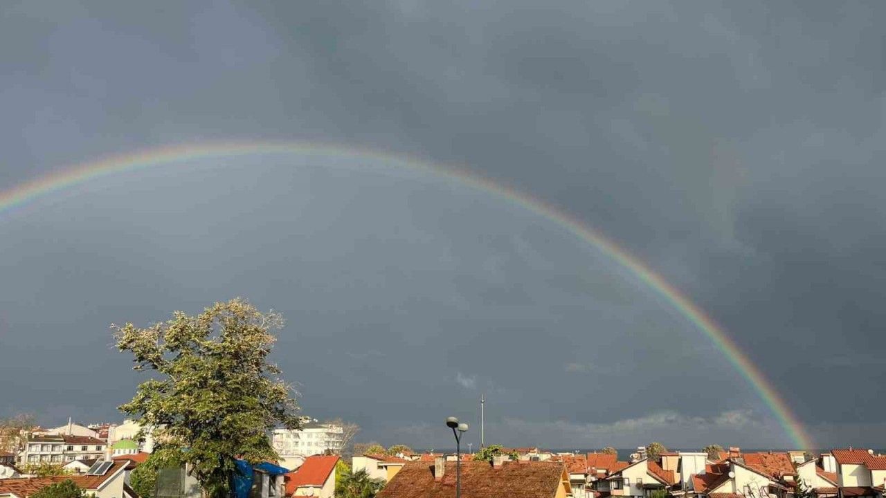 Eskişehir’de yağmur sonrası beliren ve görsel şölen oluşturan gökkuşağı kameraya yansıdı.